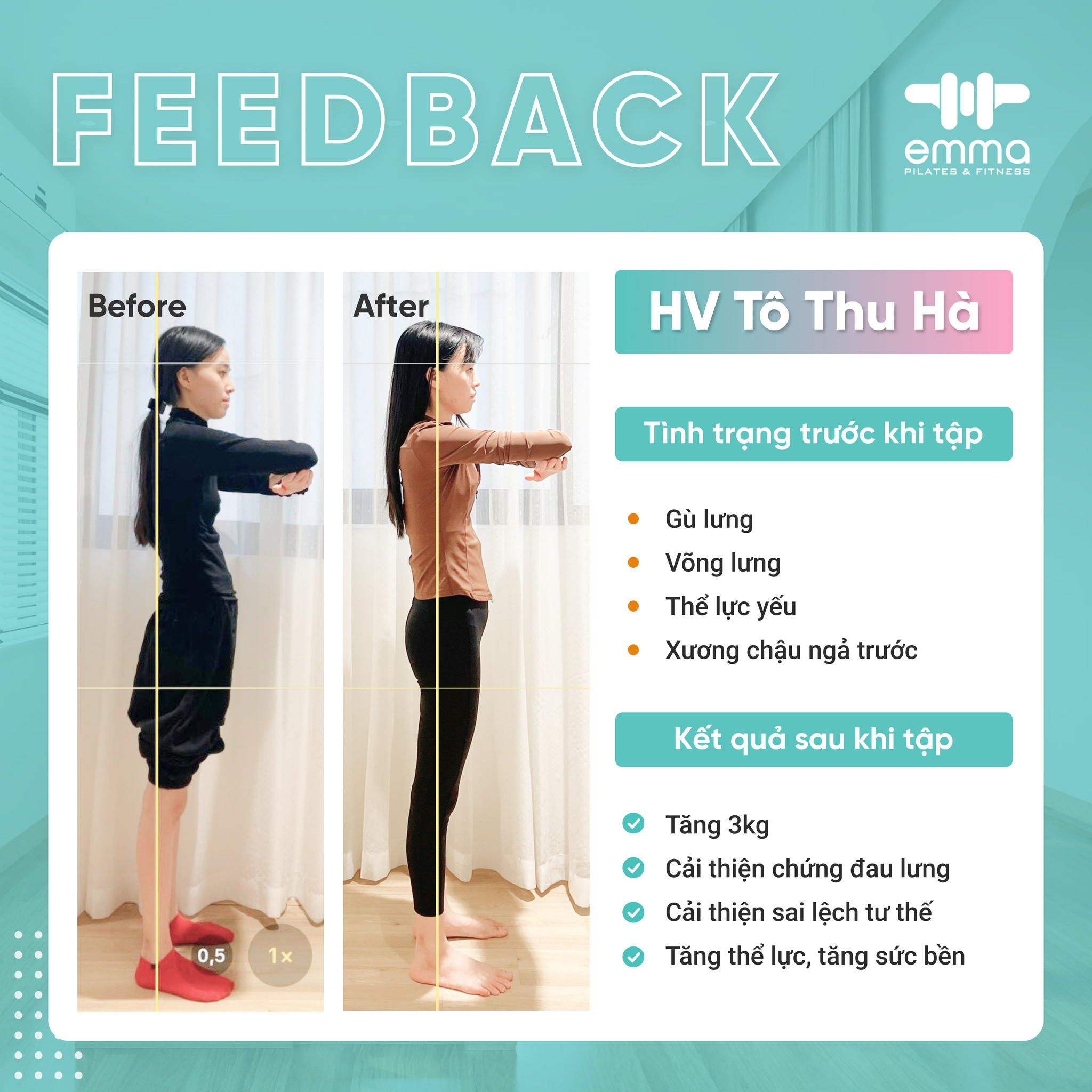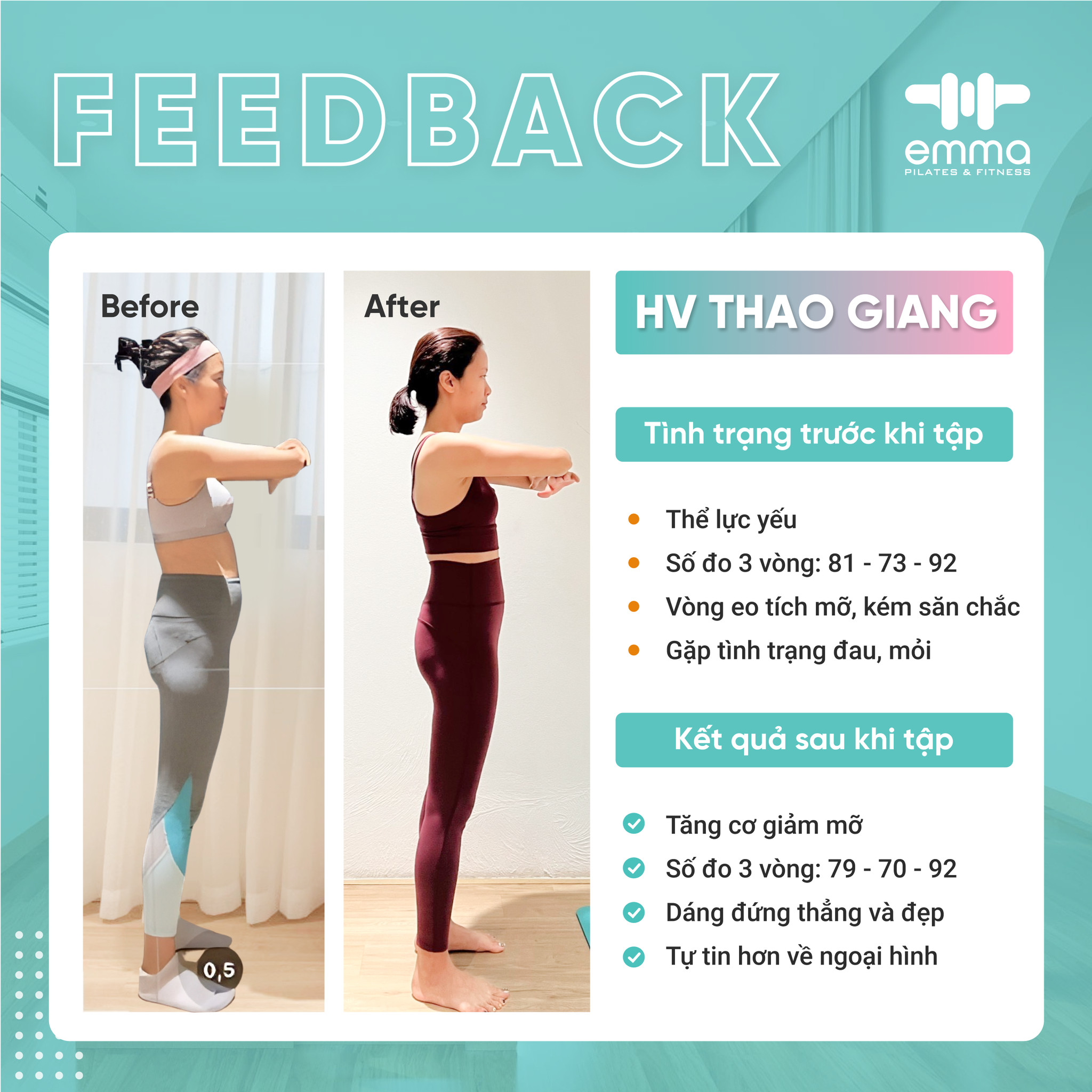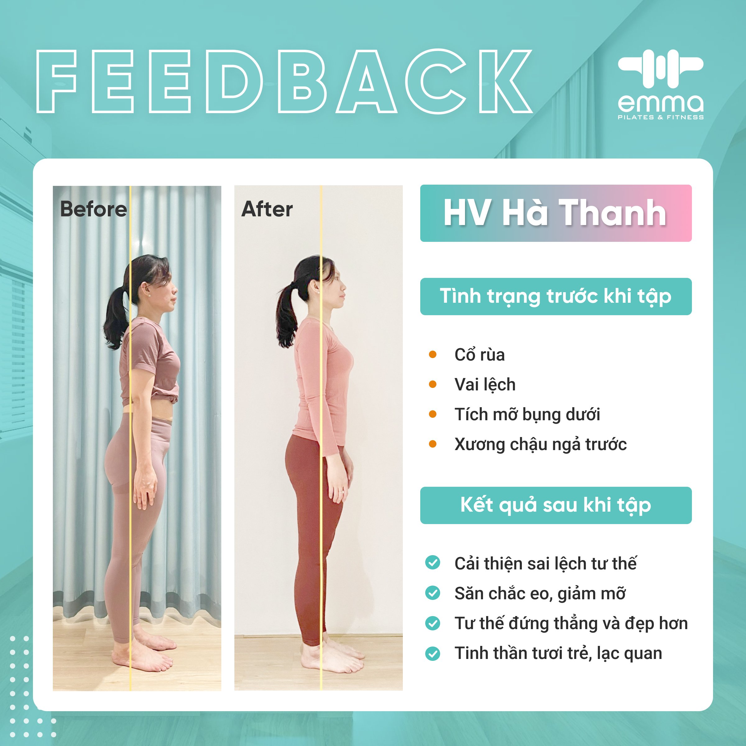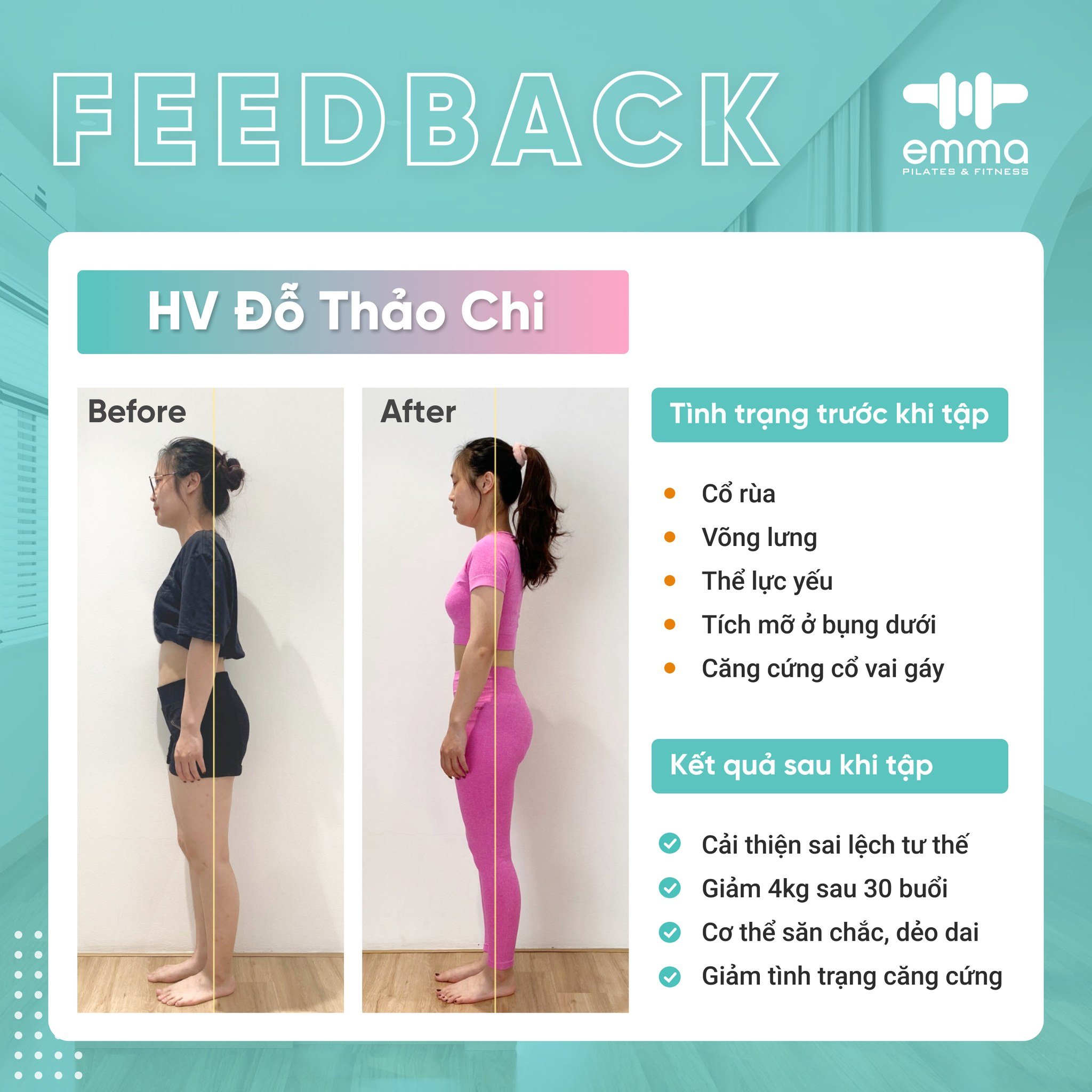 Thấu hiểu những nỗi lo của các bạn, EMMA PILATES ra đời nhằm giúp bạn xóa những căng thẳng cũng như là lo toan của công việc, giúp bạn cải thiện được vóc dáng, có một vòng eo thọn gọn, một thân hình quyến rũ. Với đội ngũ HLV tận tâm và được đào tạo chuẩn quốc tế, tôi tin chắc rằng bạn sẽ sớm có một thân hình mà bạn hằng mong ước..